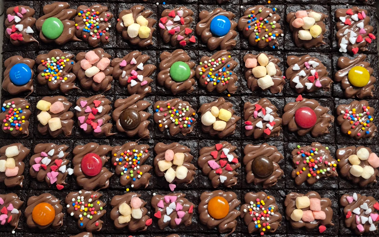 64pcs Brownies [10"inch size] box inclusive of customised fondant wordings with Nutella & toppings: Marshmallow, Sprinkles, M&M $45 only Self-collection available at Bedok South Rd / delivery $15